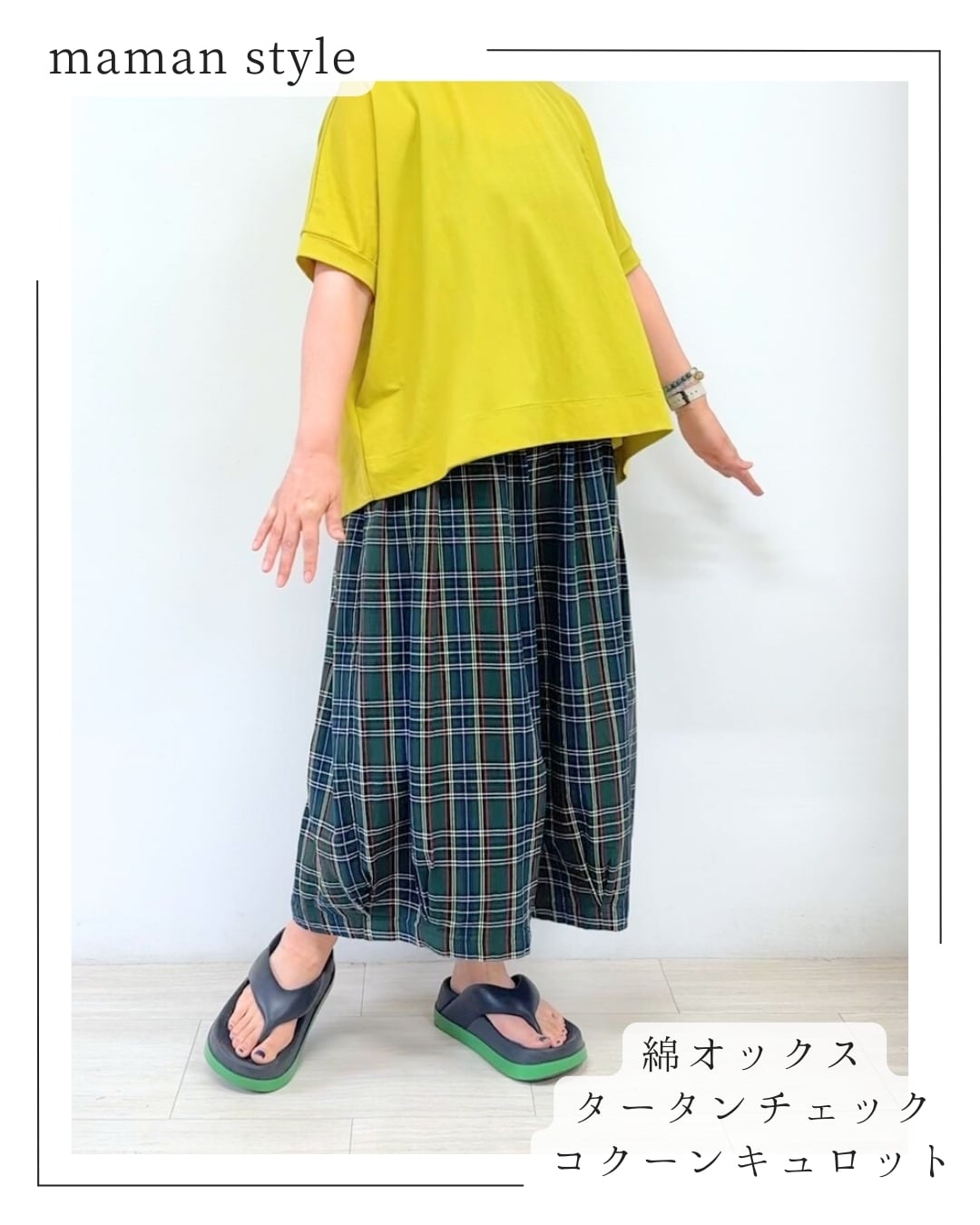 どこか懐かしさのあるタータンチェックのサーカスキュロットパンツ。